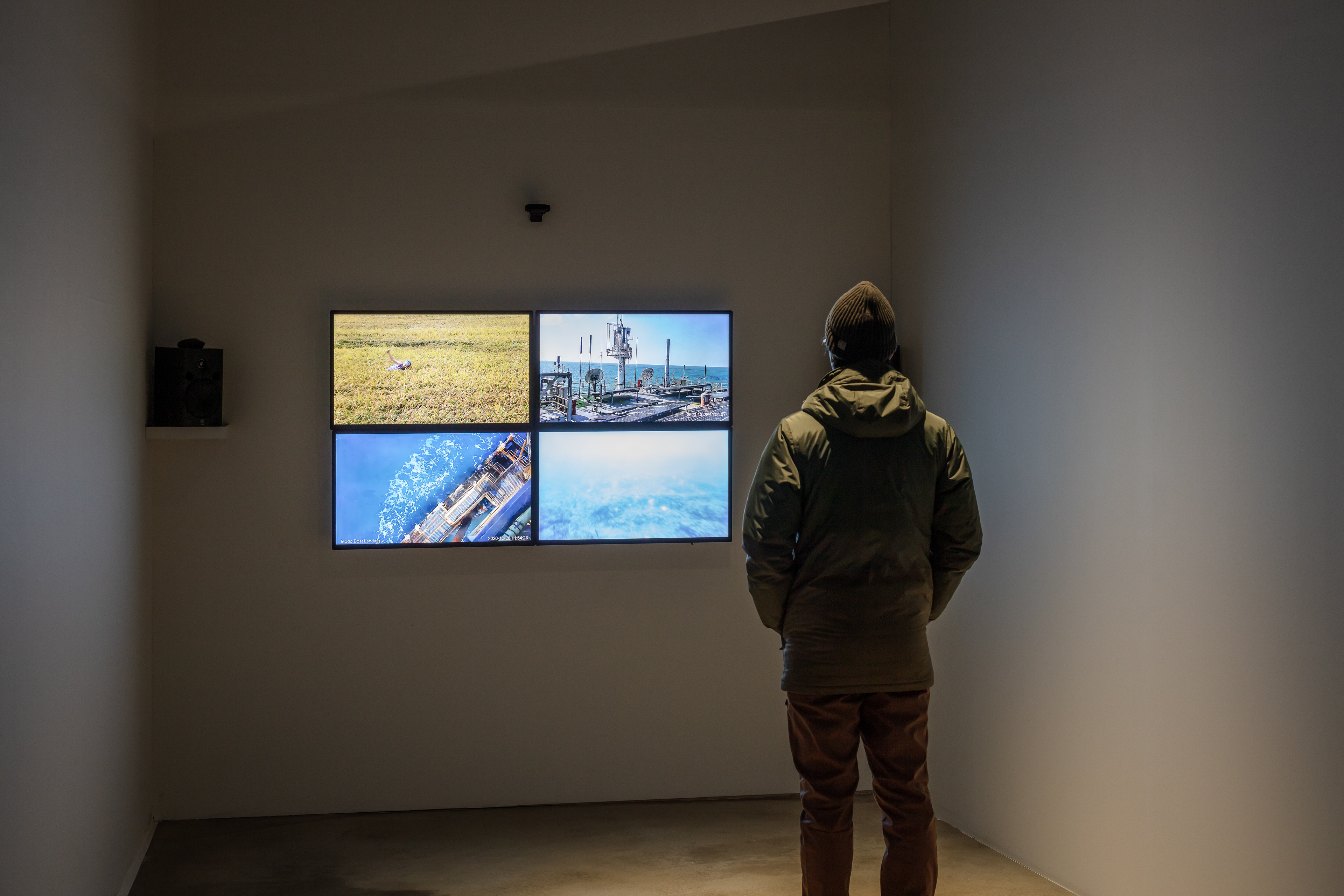 As I brought real-time CCTV into my work, I had many questions for myself as an artist. However, numerous birds flying around in real time, a rainy base, a sunset base (2nd channel), and a boat landing (3rd channel) near the end of the exhibition showed a small boat floating past the camera. My act of bringing in the CCTV gave me a strange sense of relief.